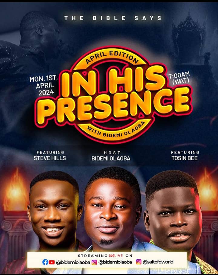 In His Presence with Tobi Akuraku Ft Bidemi Olaoba (October 2023 Edition) is an experience you need to encounter to touch the heart of the lord. Click on the link below to download (12MB)